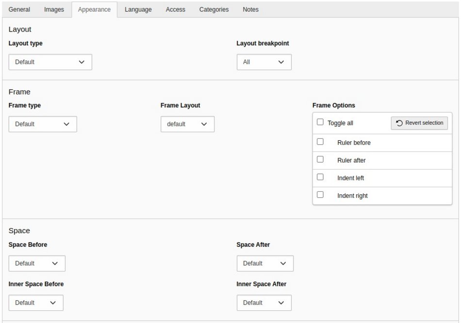 Funkionserweiterungen wurden für Layouts, Rahmen, Hintergrundbilder, Animationen, Attribute und Bilder realisiert. Diese sind Hauptsächlich über die Registerkarte "Erscheinungsbild" zugänglich.