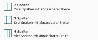 Mit Spalten kann ein Seitenbereich weiter aufgeteilt werden. Es können zwei, drei und vier Spalten in einer Reihe erstellt werden.